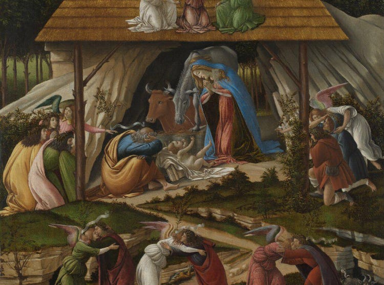 Botticelli’s The Mystical Nativity is a celestial struggle between light and darkness balanced by anguished suffering (Psalm 22) and redemption (Isaiah 53).